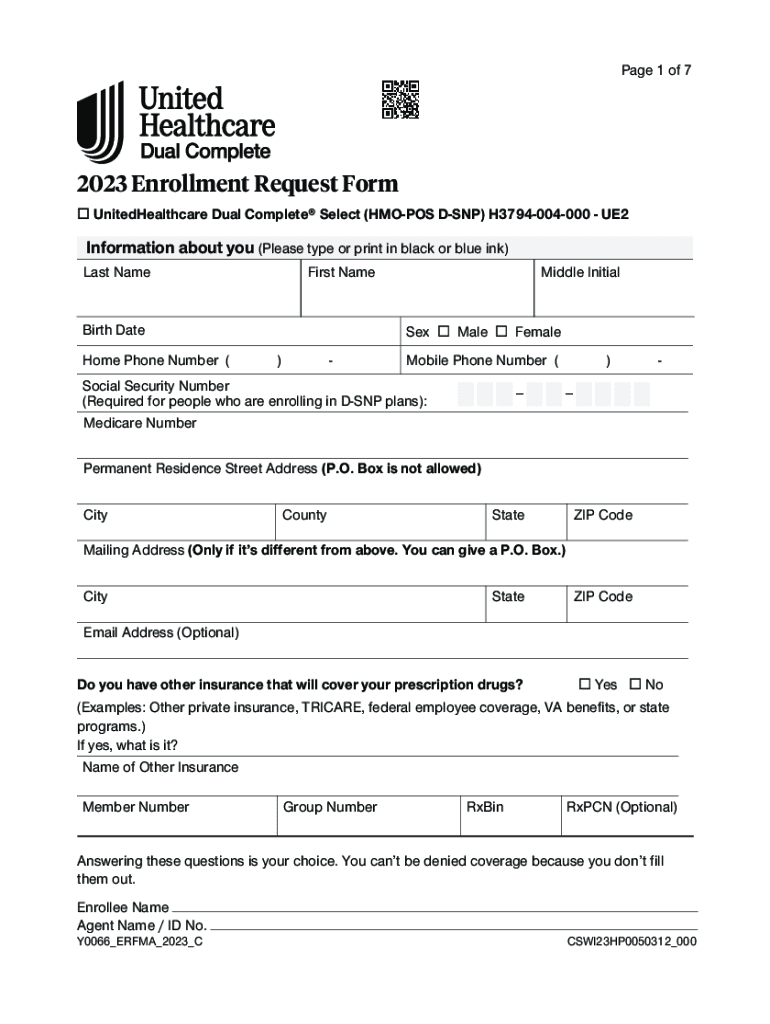 Page 1 of 72023 Enrollment Request Form