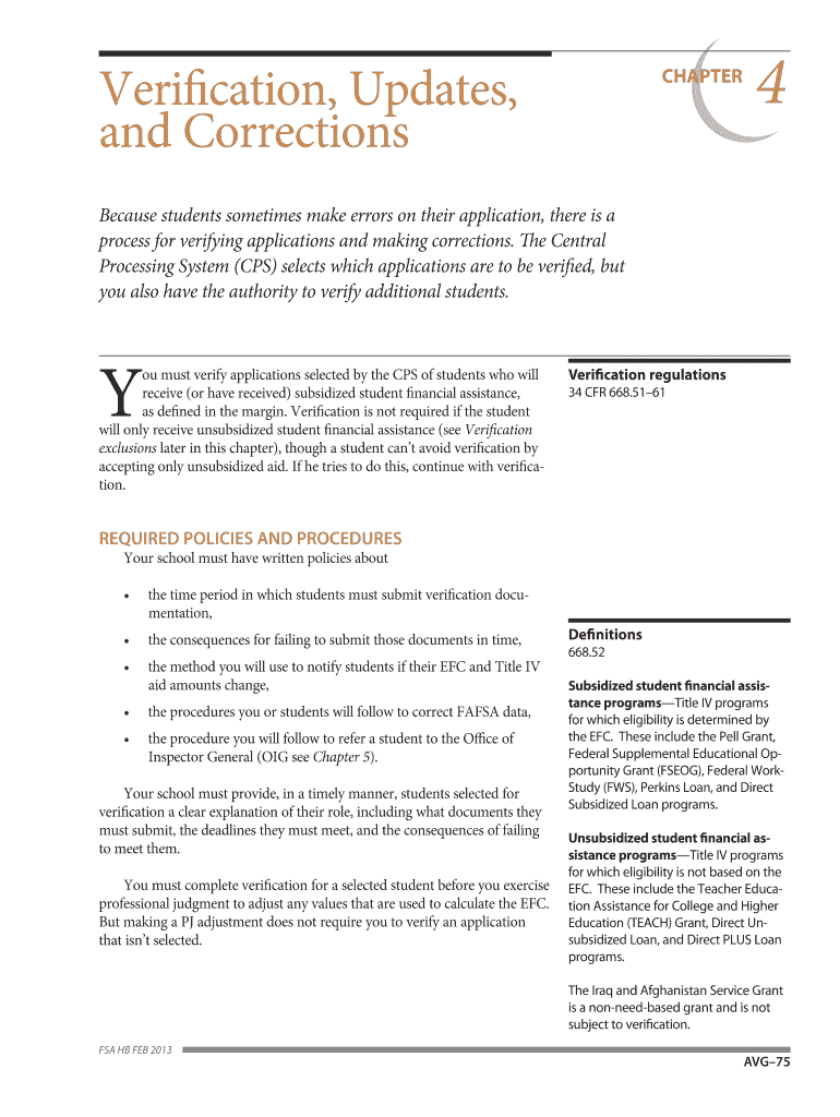 Verification, Updates, and Corrections CHAPTER 4 Because students sometimes make errors on their application, there is a process for verifying applications and making corrections. The Central Processing