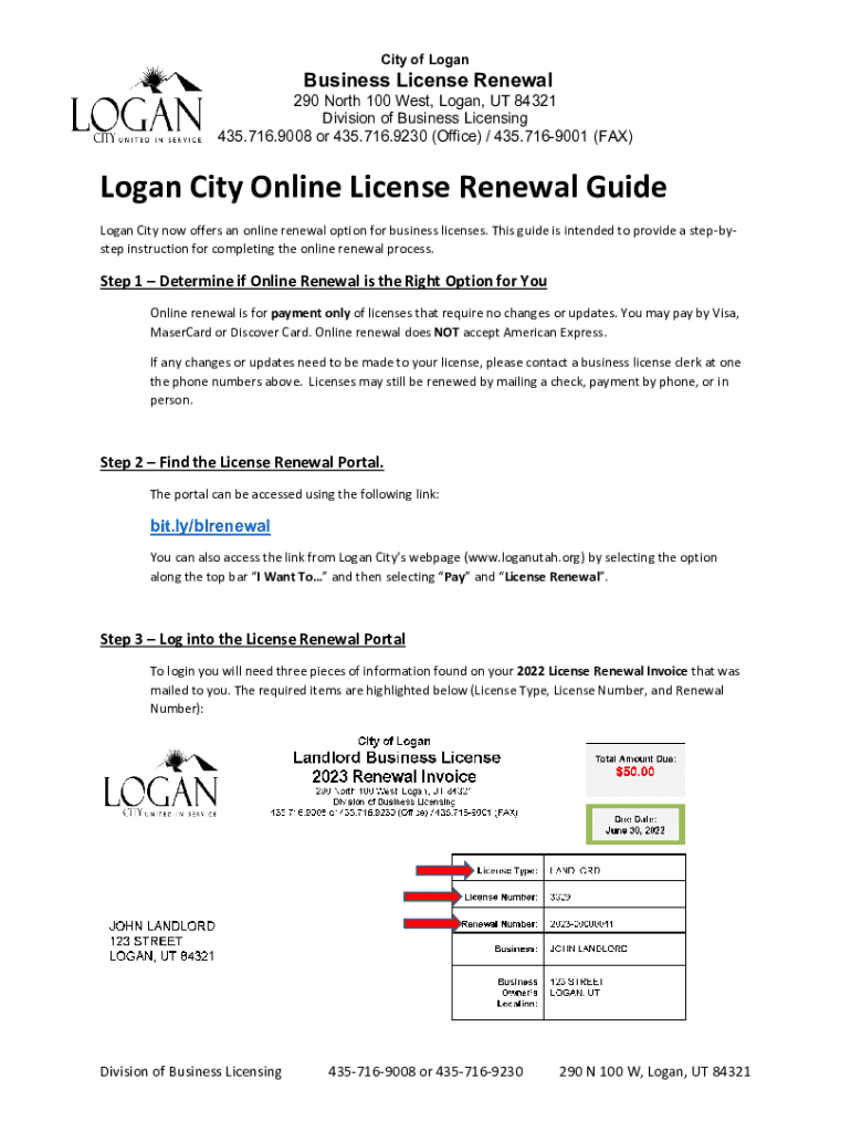 435.716.9008 or 435.716.9230 (Office) / 435.7169001 (FAX)Logan City Online License Renewal Guide