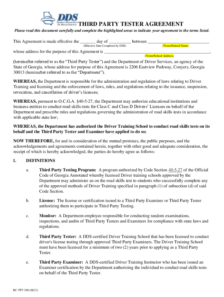 Review the third party tester agreement form thoroughly to understand the requirements and terms.