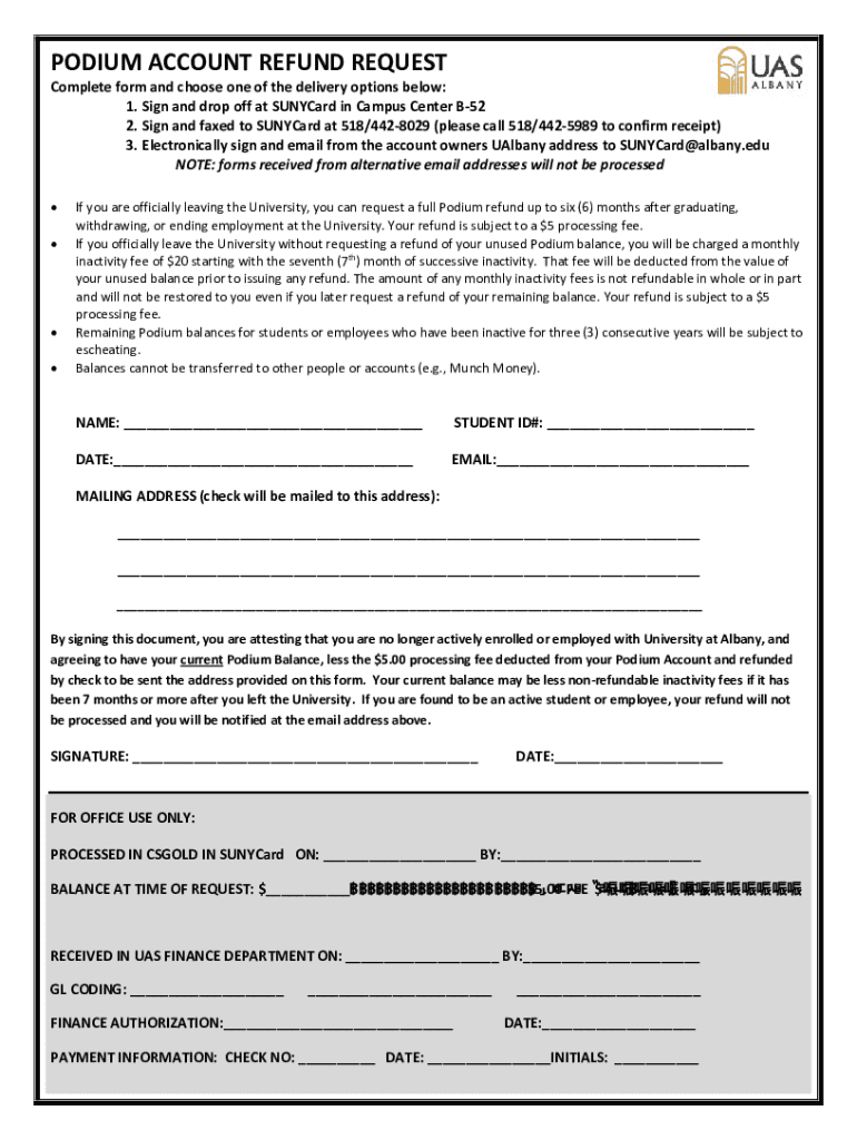 PODIUM ACCOUNT ACTIVITY & REFUND POLICY Podium balances remain on your Unheard while you are a current student or active employee. New deposits will be added to your existing balance and can be made