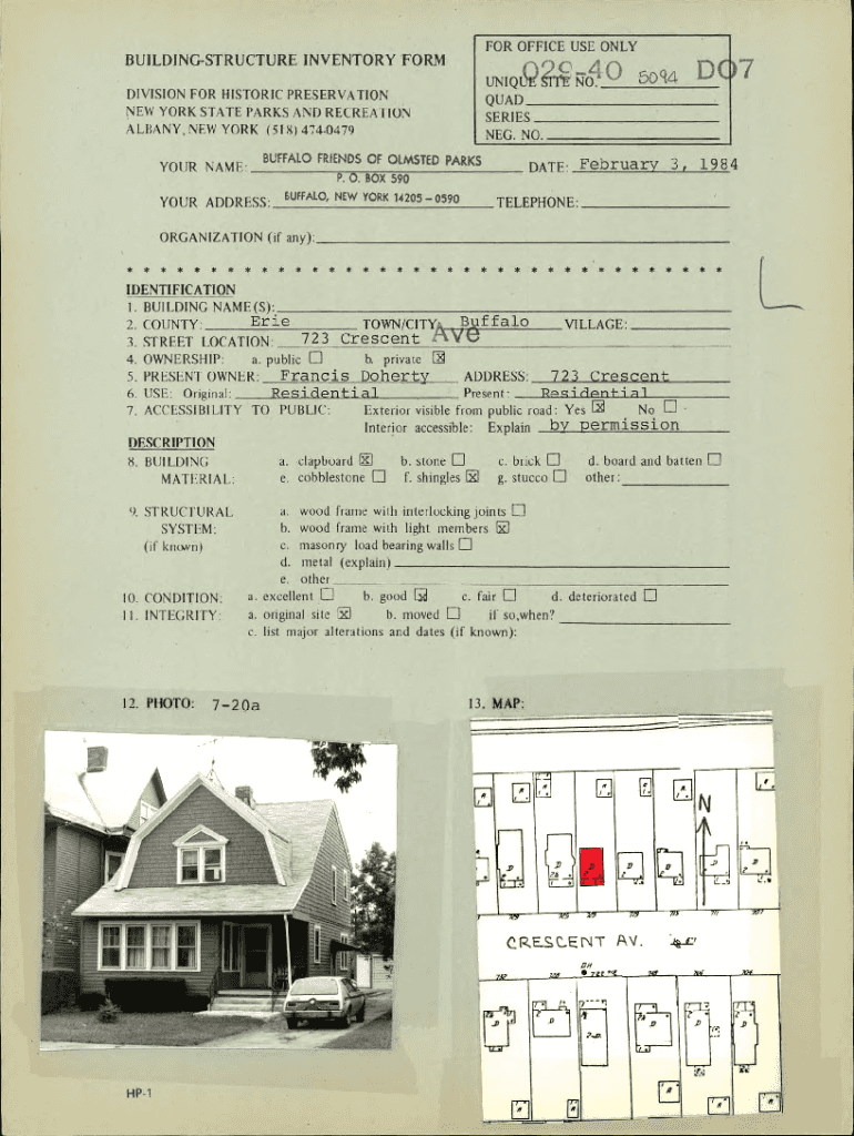 FOR OFFICE USE ONLYBUILDINGSTRUCTURE INVENTORY FORMUNJQQN01 0DIVISION FOR HISTORIC PRESERVATION NEW YORK STATE PARKS AND RECREATION ALBANY, NEW YORK (SI 8) 4740479D 75oq4QUAD _ _ _ _ _ _ __ _ _ SERIES