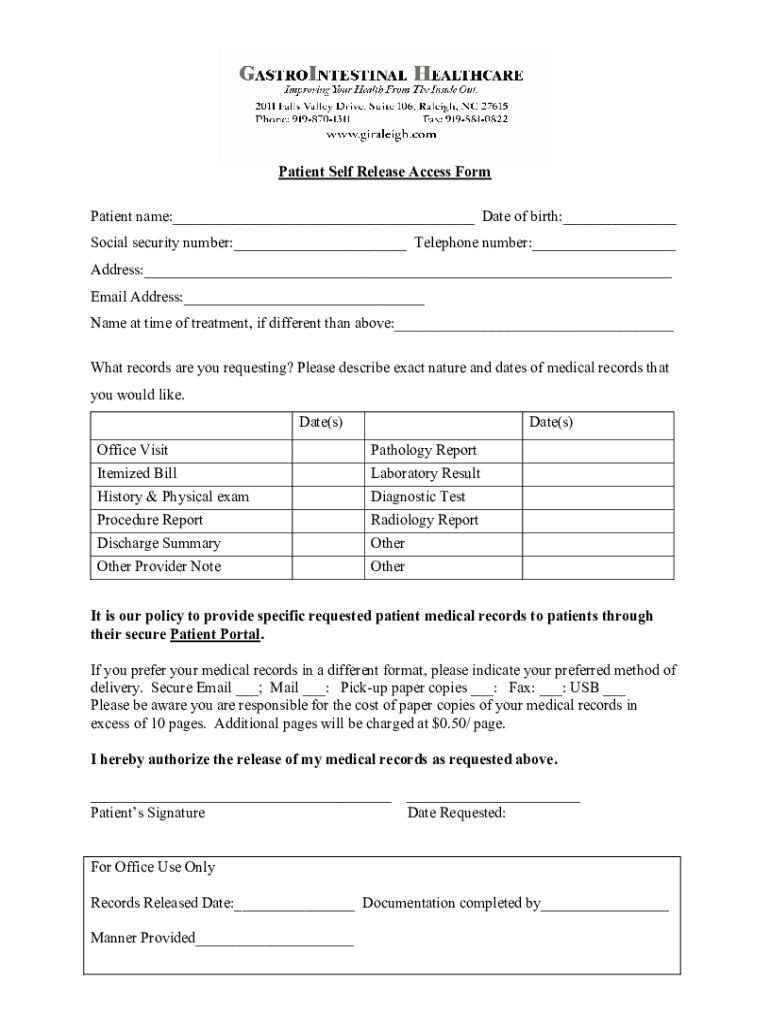 Patients can fill out patient access to medical by requesting their medical records from healthcare providers or facilities in writing or through online portals.