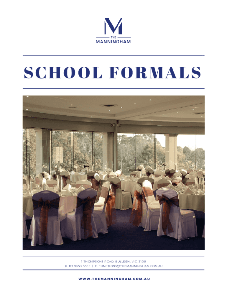 SCH O L FO R MA L S1 THOMPSON ROAD, BULLPEN, VIC, 3105 P. 03 9850 5555 | E. FUNCTIONS@THEMANNINGHAM.COM.AUWWW. T H EMA N I N GH A M. C O M. A Welcome to The Manning ham has created an enviable reputation