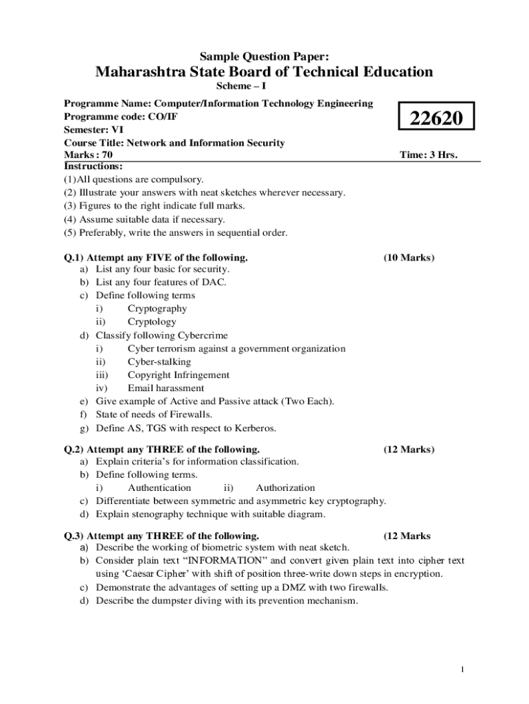 Sample Question Paper:Maharashtra State Board of Technical Education Scheme I Program Name: Computer/Information Technology Engineering Program code: CO/IF Semester: VI Course Title: Network and Information