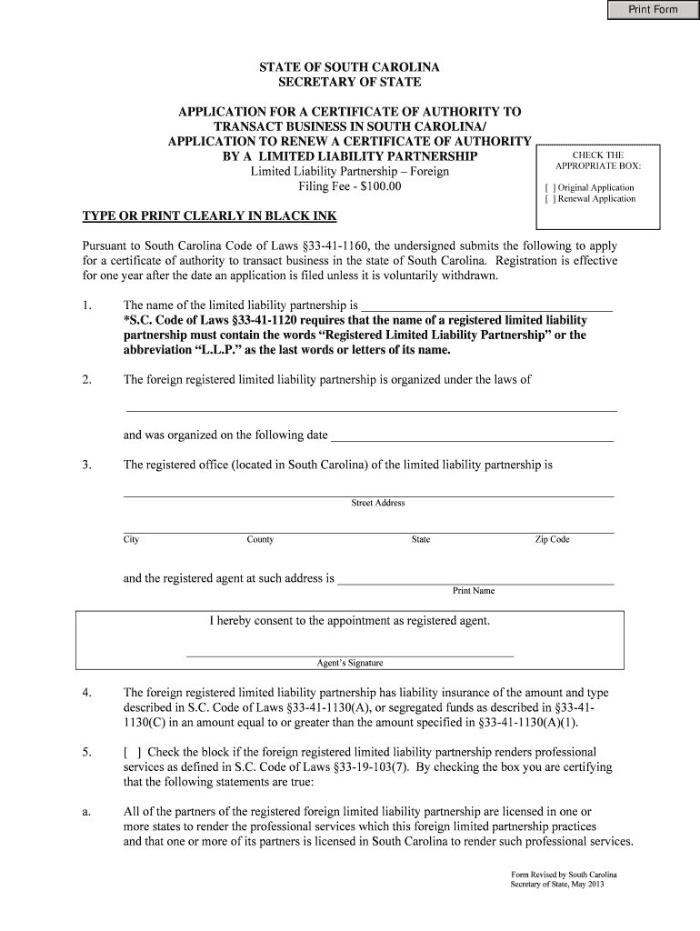 Get the free Limited Liability Partnership Foreign - sos sc