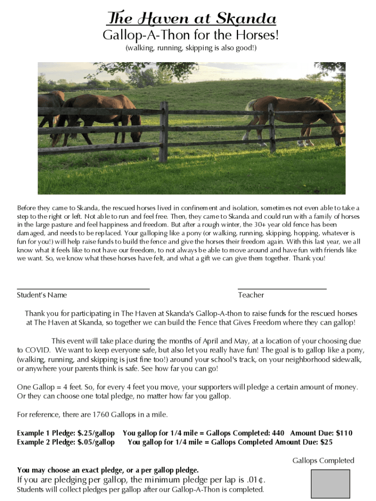 Gallop a thon form is a form used to report fundraising efforts in the form of a thon event.