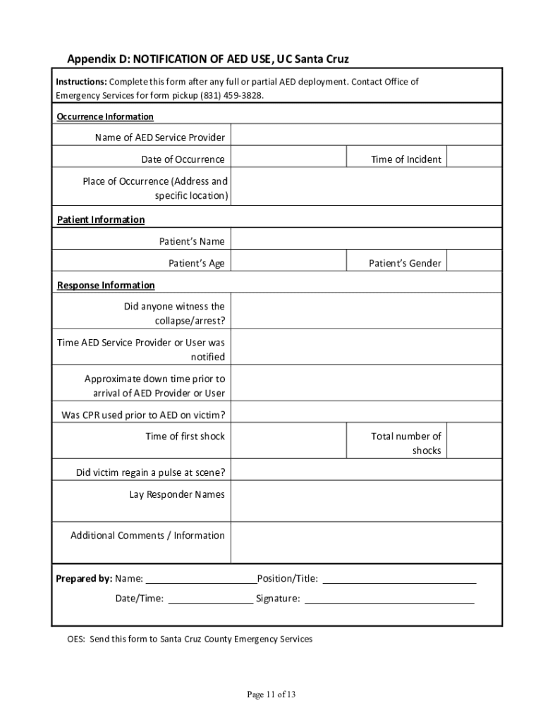 Appendix D: NOTIFICATION OF AED USE, UC Santa Cruz