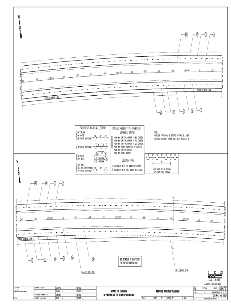 4STA. 498+00 MATCHLINE02 501 500+00 59 9 48 9 41511510+0050950850706 5+00 05 504 503 53MATCHLINE STA. 512+7521512ANE NG L MBI I TRUCK CLAN ENG L MBI I TRUCK PAVEMENT MARKING LEGEND 14\” YELLOW24\”