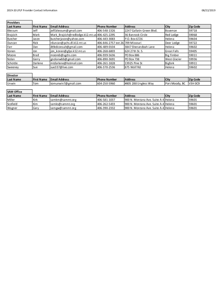 201920 LPP Provider Contact Information08/22/2019Providers