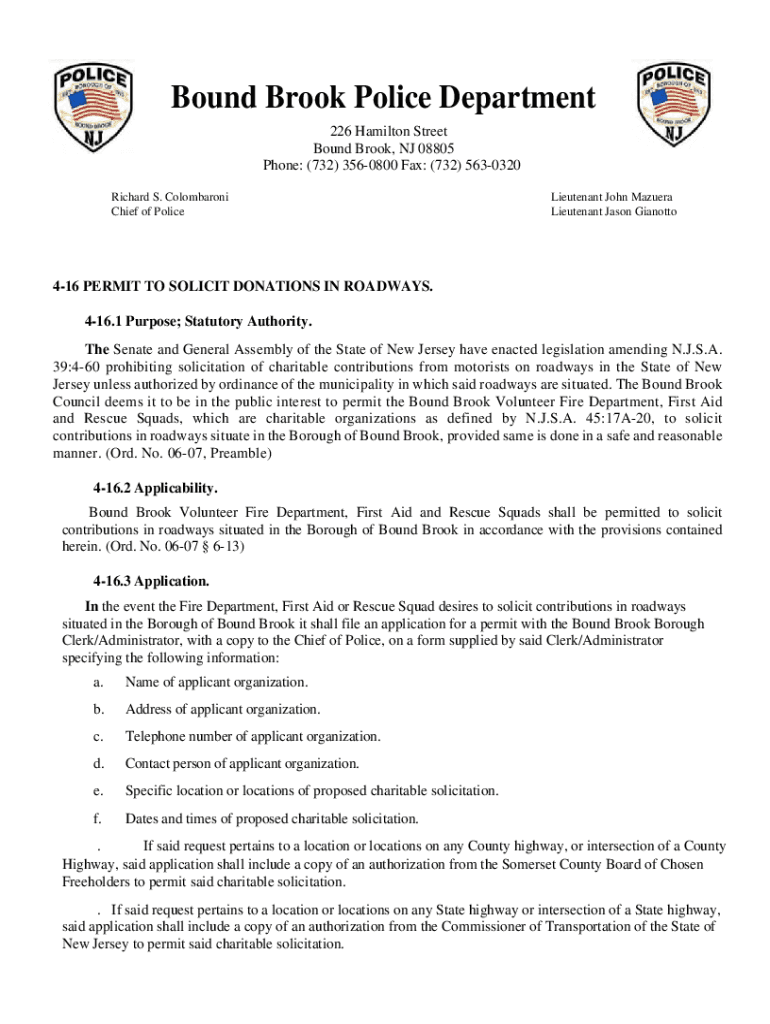Bound Brook Police Department 226 Hamilton Street Bound Brook, NJ 08805 Phone: (732) 3560800 Fax: (732) 5630320 Richard S. Colombaroni Chief of PoliceLieutenant John Manuela Lieutenant Jason Gianotto416
