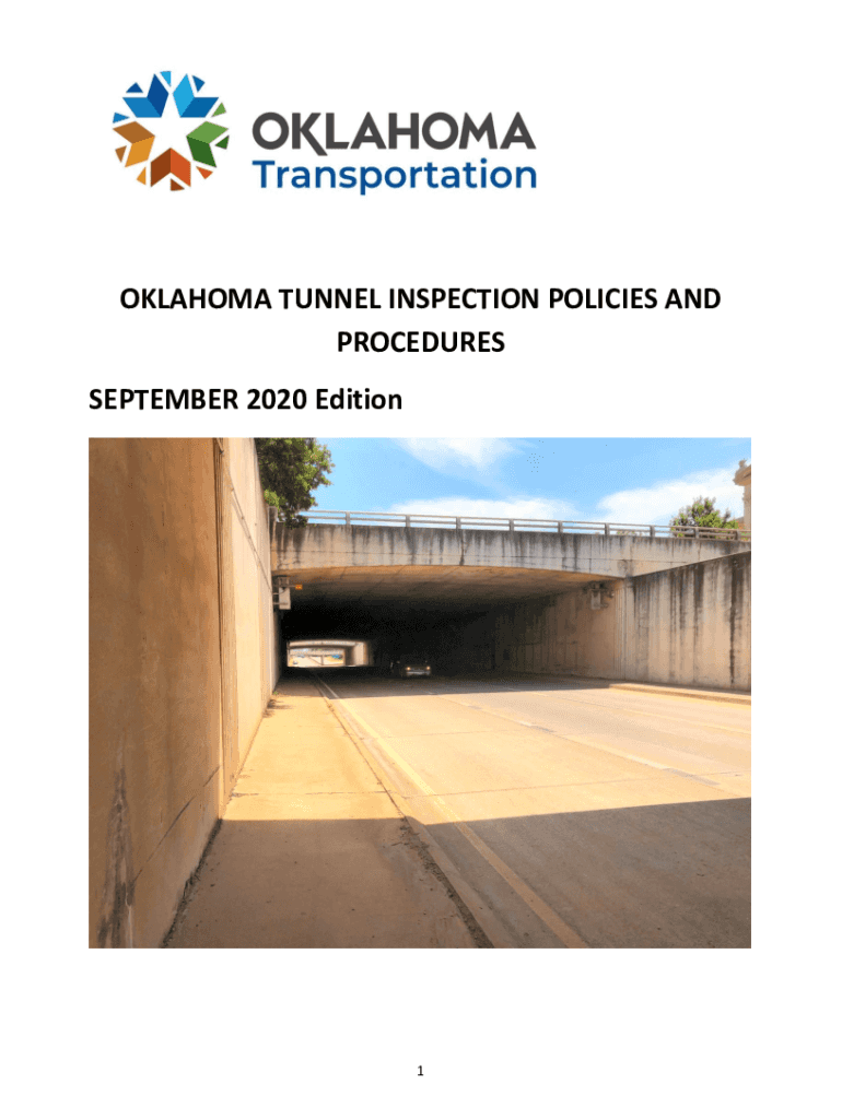 OKLAHOMA TUNNEL INSPECTION POLICIES AND PROCEDURES SEPTEMBER 2020 Edition1INTRODUCTION: The following is intended to complement the National Tunnel Inspection Standards (OTIS) found in the Code of