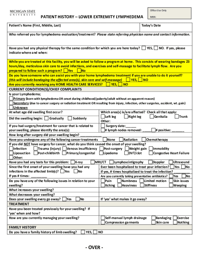 Office Use Outpatient HISTORY LOWER EXTREMITY LYMPHEDEMA Patients Name (First, Middle, Last)MAN:Today's Daewoo referred you for lymphedema evaluation/treatment? Please state referring physician name