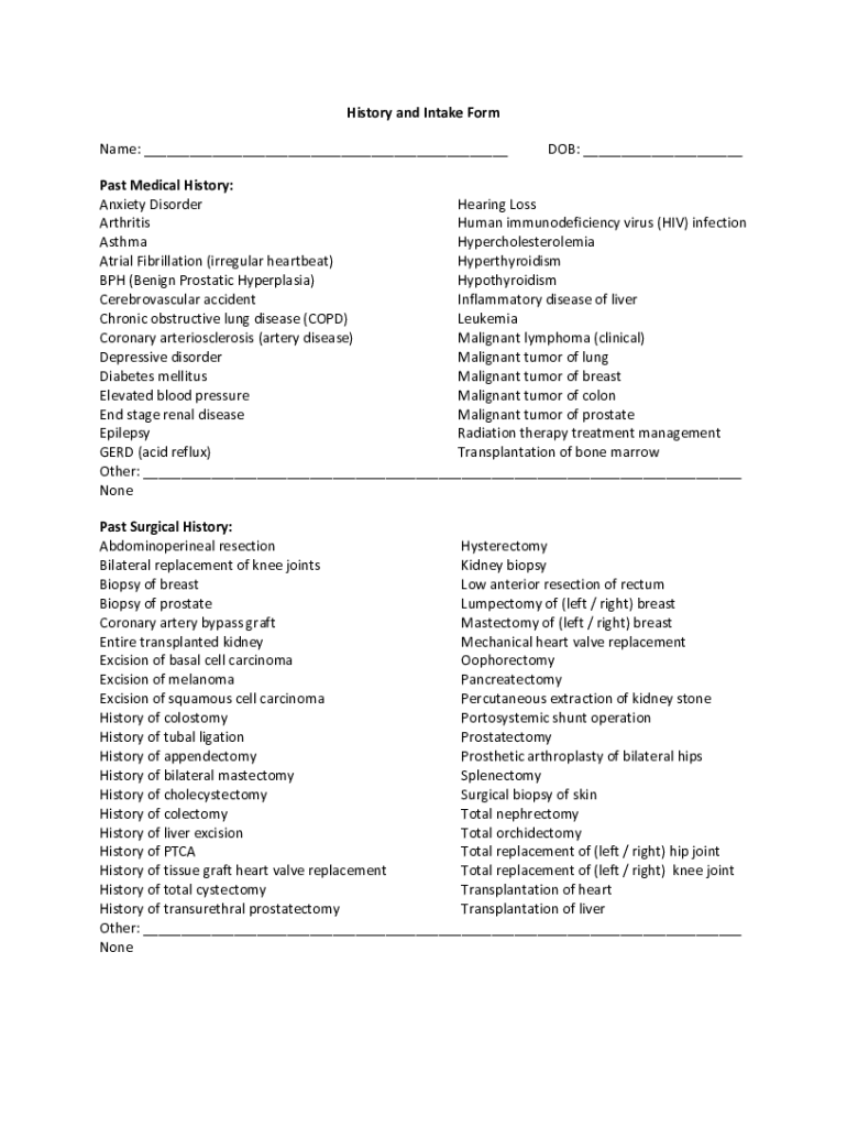 Patients are required to fill out past medical history select forms and provide accurate information about their past medical history.