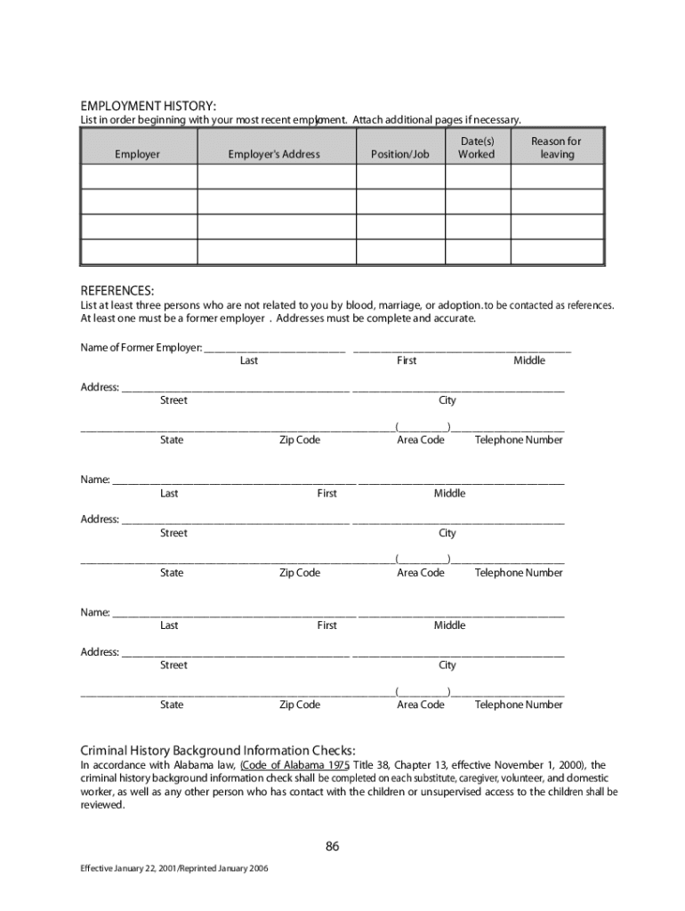 Get the free 86 EMPLOYMENT HISTORY: REFERENCES: Criminal History ...