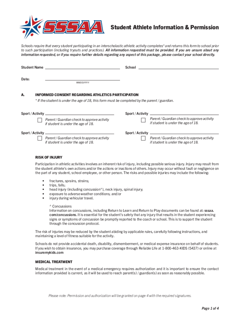 Schools require that every student participating in an interscholastic athletic activity completes* and returns this form to school prior