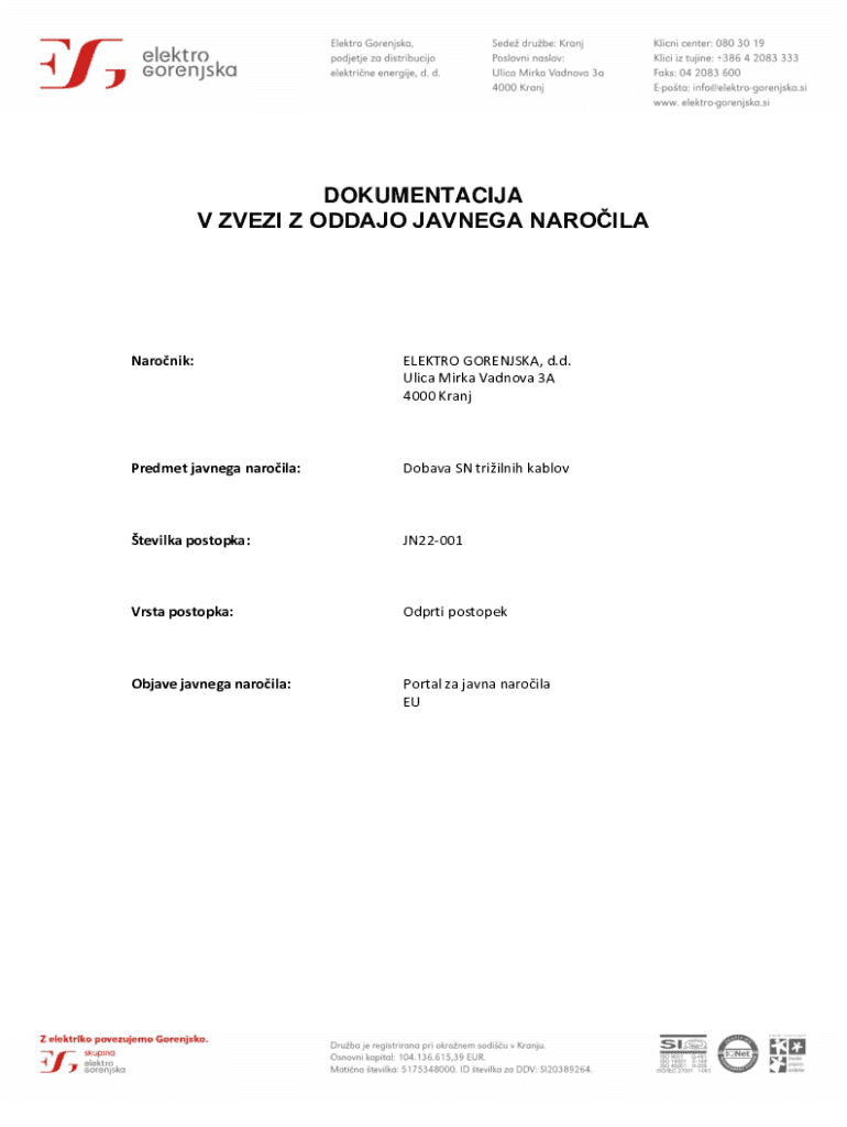 Get the free DOKUMENTACIJA V ZVEZI Z ODDAJO JAVNEGA ...