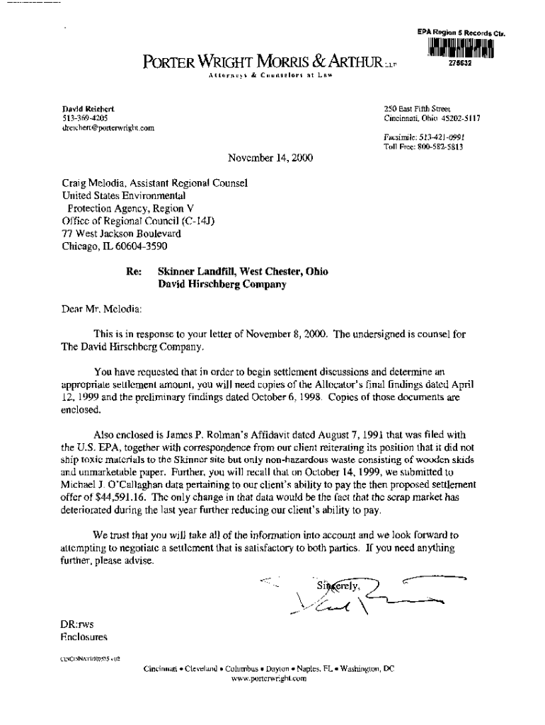 EPA Region 5 Records Ctr. PORTER WRIGHT MORRIS & ARTHUR,275632A t o r n e y s & C o u n s e l o r s at Law David Rather 5133694205 are:ichert@porterw right.com250 East Fifth Street Cincinnati, Ohio