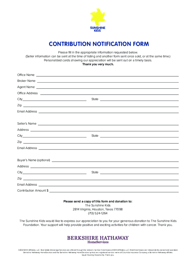 PROMOTION IDEAS Lend your support to The Sunshine Kids Foundation and raise both community awareness and your image as a sales professional who cares about more than just the next sale. SILENT AUCTION