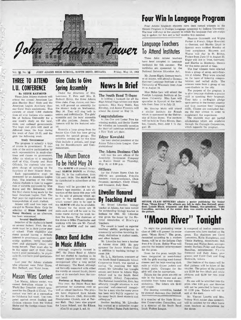 FourWinInLanguage Program Four Adams language students have been named winners in the Honors Program in Foreign Language sponsored by Indiana University. The four will stay in the country in which