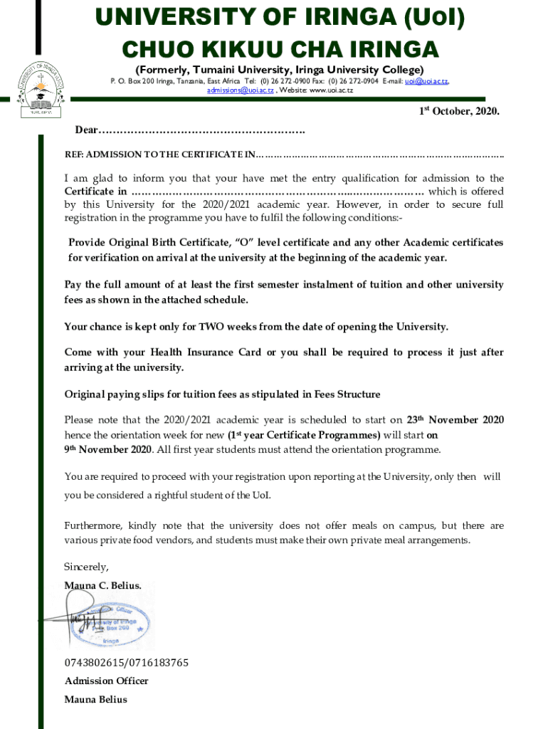 Get the free UoI Certificate Joining Instruction 2020 21PDFHeart