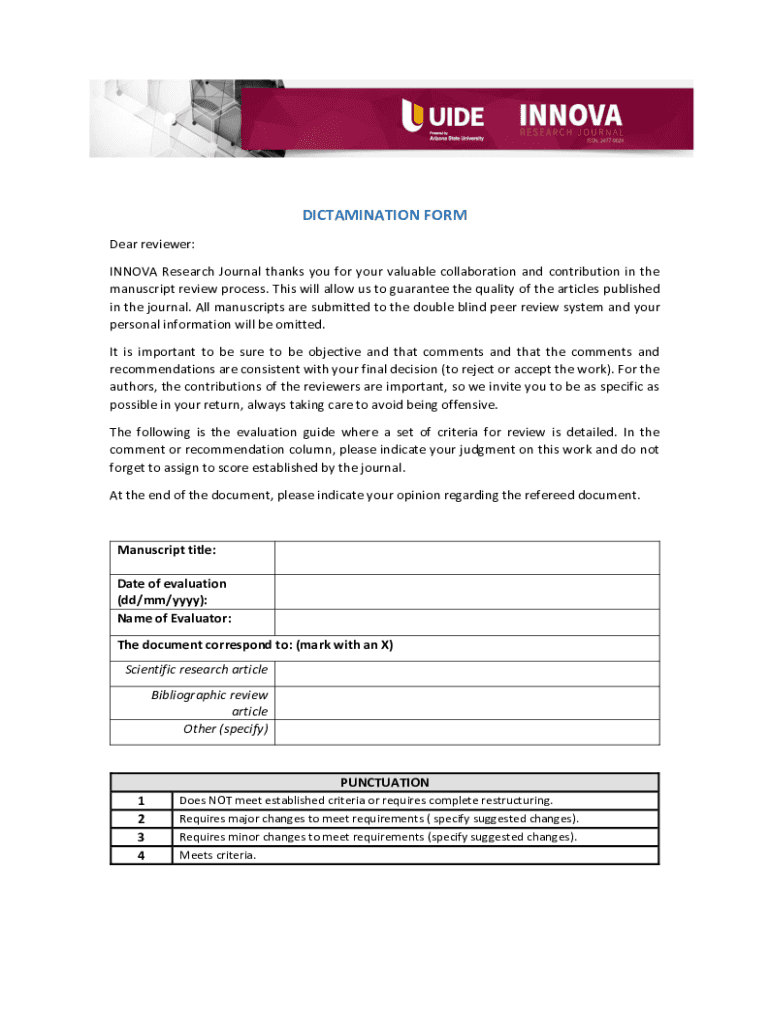 DISCRIMINATION FORM Dear reviewer: NOVA Research Journal thanks you for your valuable collaboration and contribution in the manuscript review process. This will allow us to guarantee the quality of