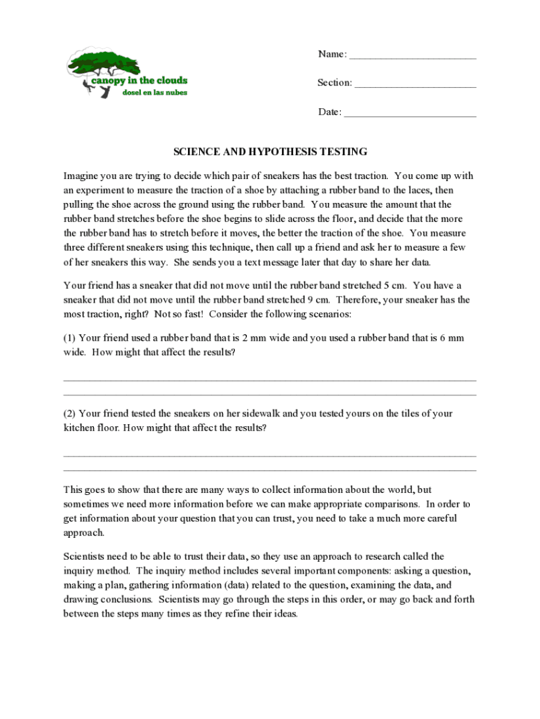 Name: ___ Section: ___ Date: ___SCIENCE AND HYPOTHESIS TESTING Imagine you are trying to decide which pair of sneakers has the best traction. You come up with an experiment to measure the traction
