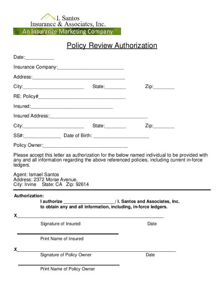Get the free Review Authorization.qxd - I. Santos Insurance & Associates