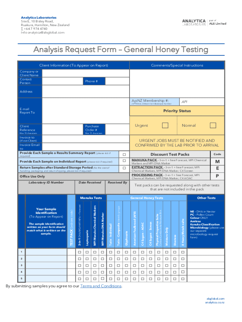 Infoanalytica@alsglobal.comAnalysis Request Form General Honey Testing