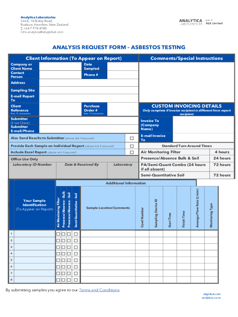 Infoanalytica@alsglobal.comANALYSIS REQUEST FORM ASBESTOS TESTING