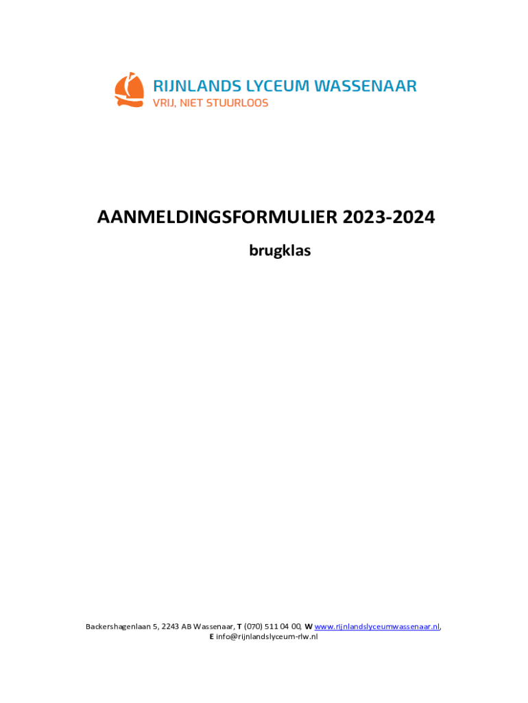 Pak de gratis Aanmeldingsformulier voor klas 2 en hoger