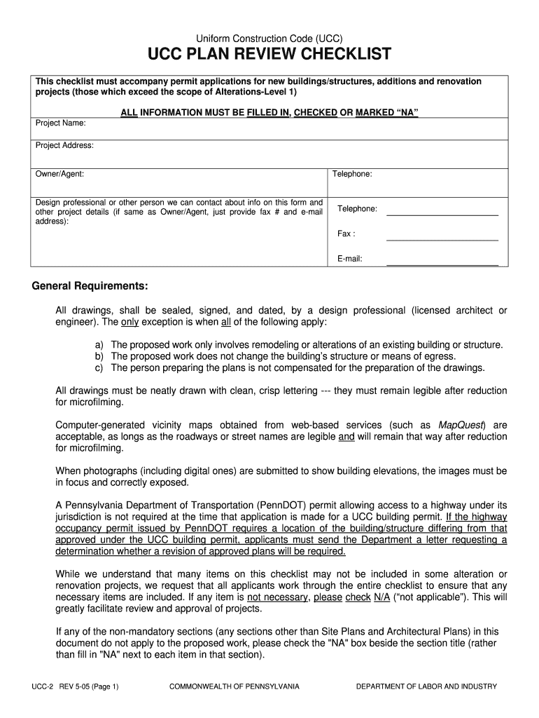 Uniform Construction Code (UCC) Applications and Information. If your computer will ... Deck Plan with Roof Submittal (page 1) ... UCC Plan Review Checklist.