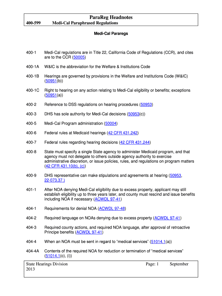 Get the free MediCal Paraphrased Regulations - dss cahwnet