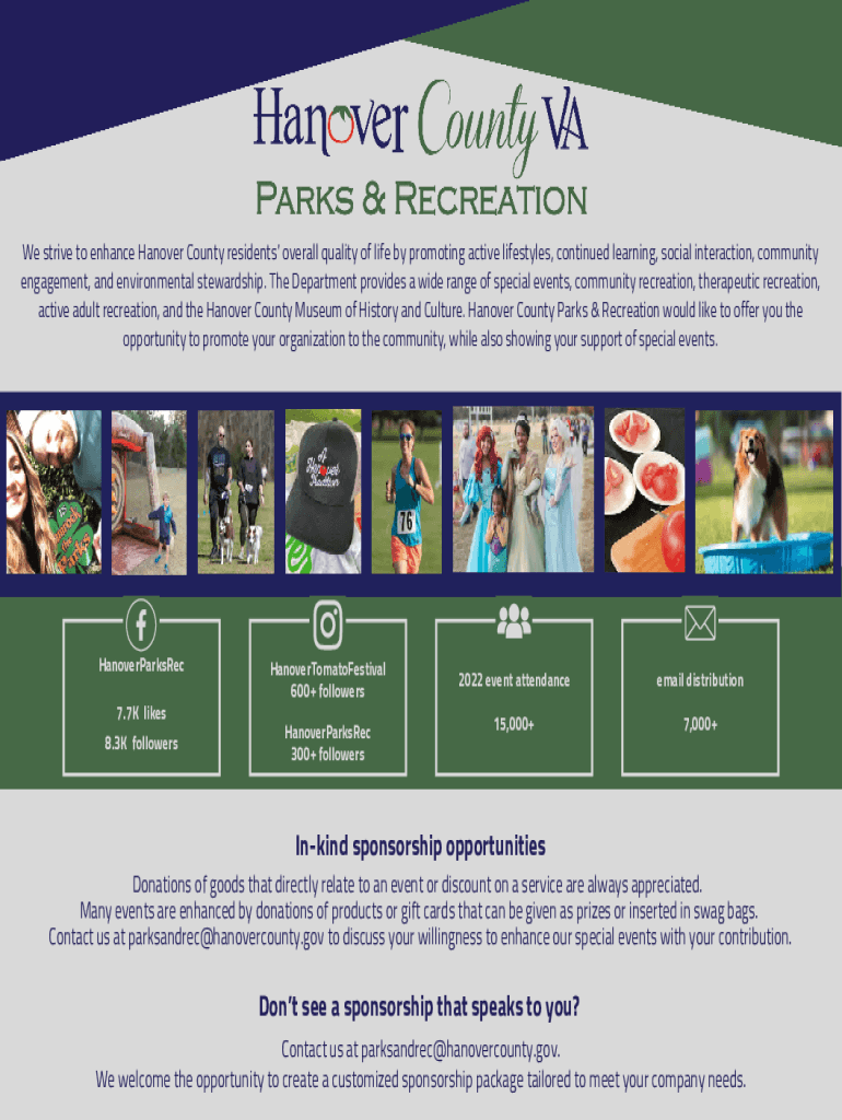 2023 Event Sponsorship Packages strive to enhance Hanover County residents\' overall quality of life by promoting active lifestyles, continued learning, social interaction, community engagement, and