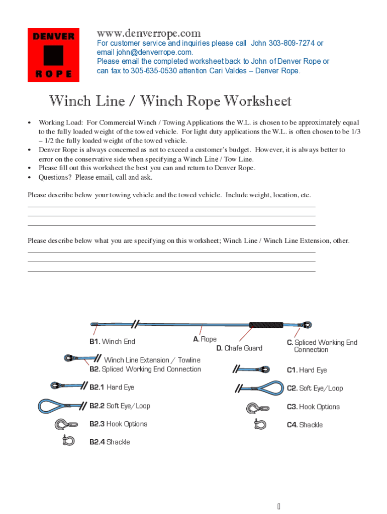 Get the free Winch Line / Winch Rope Worksheet - custom rope maker