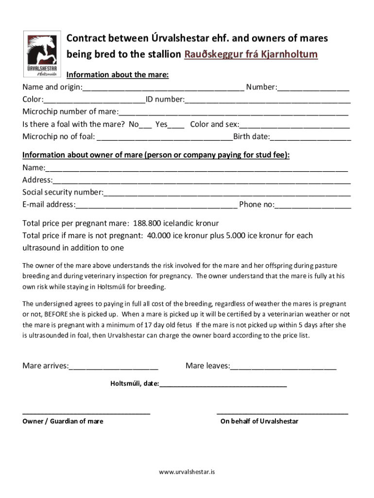 being bred to the stallion Rauskeggur for Kjarnholtum