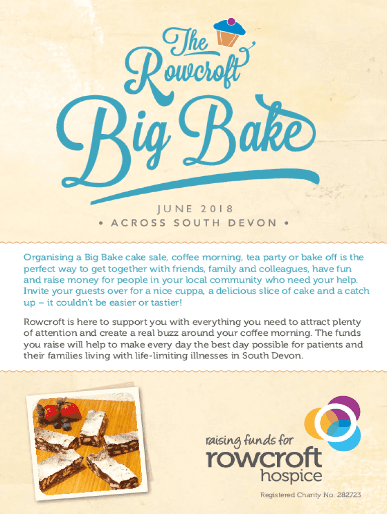 JUNE 2018Organising a Big Bake cake sale, coffee morning, tea party or bake off is the perfect way to get together with friends, family and colleagues, have fun and raise money for people in your
