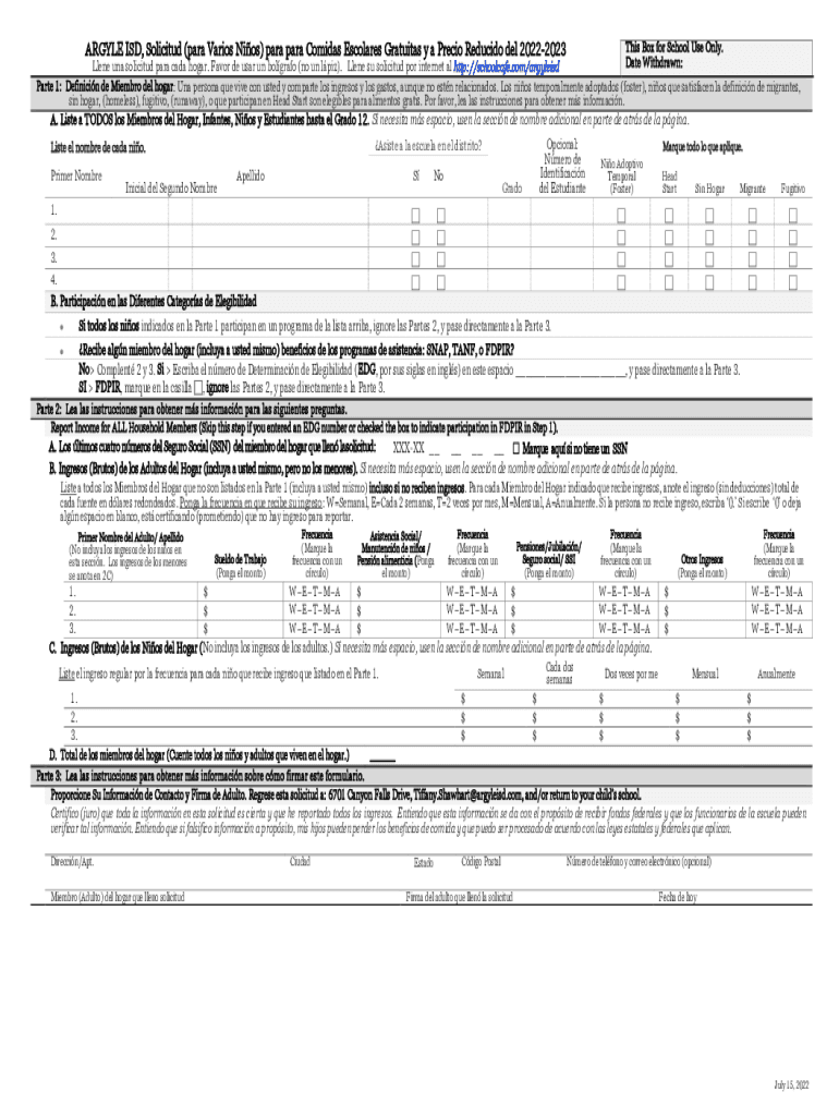 Obtener el gratis ARGYLE ISD, Solicitud (para Varios Nios) ...
