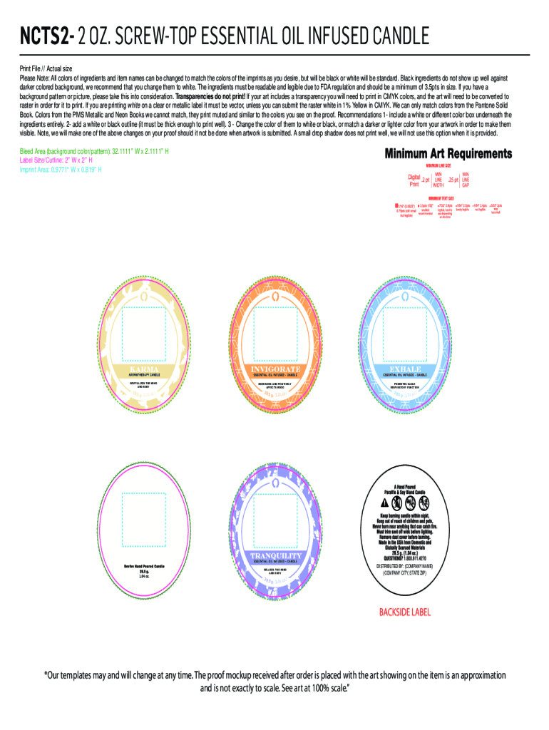 NCTS2 2 OZ. SCREW TOP ESSENTIAL OIL INFUSED CANDLE Print File // Actual size Please Note: All colors of ingredients and item names can be changed to match the colors of the imprints as you desire,