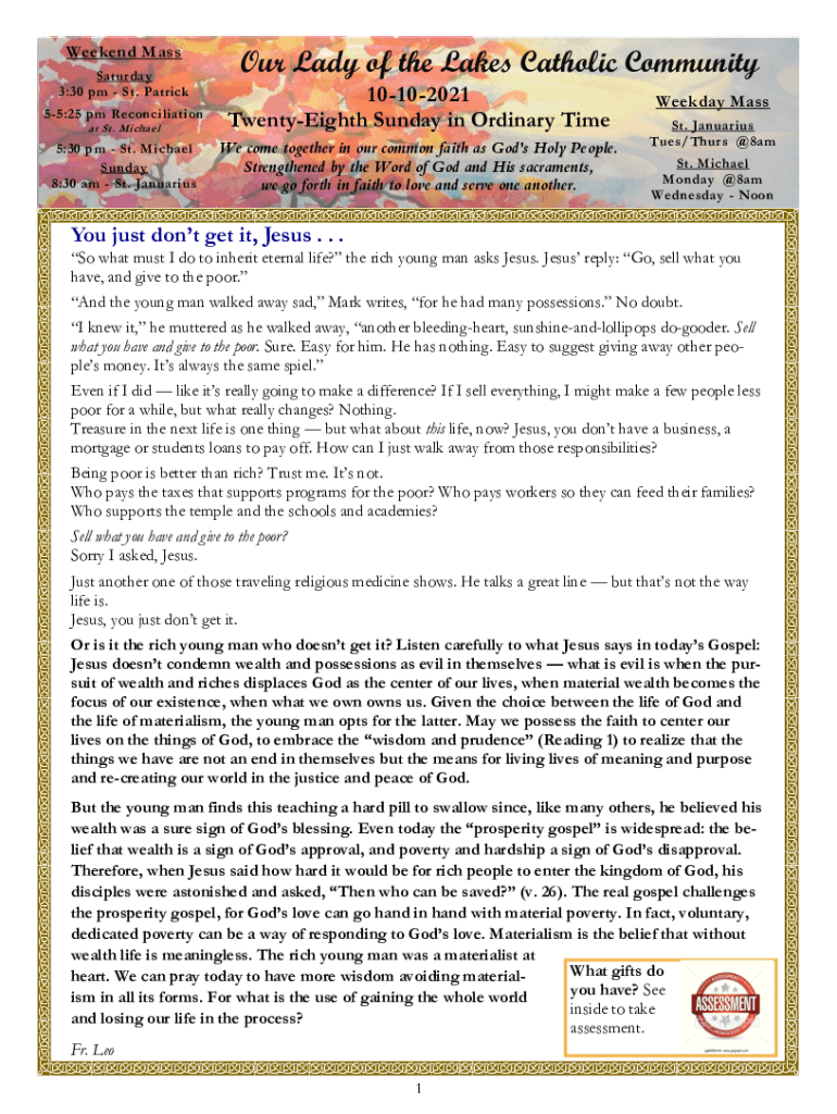 TwentyEighth Sunday in Ordinary Time5:30 pm St. Michael