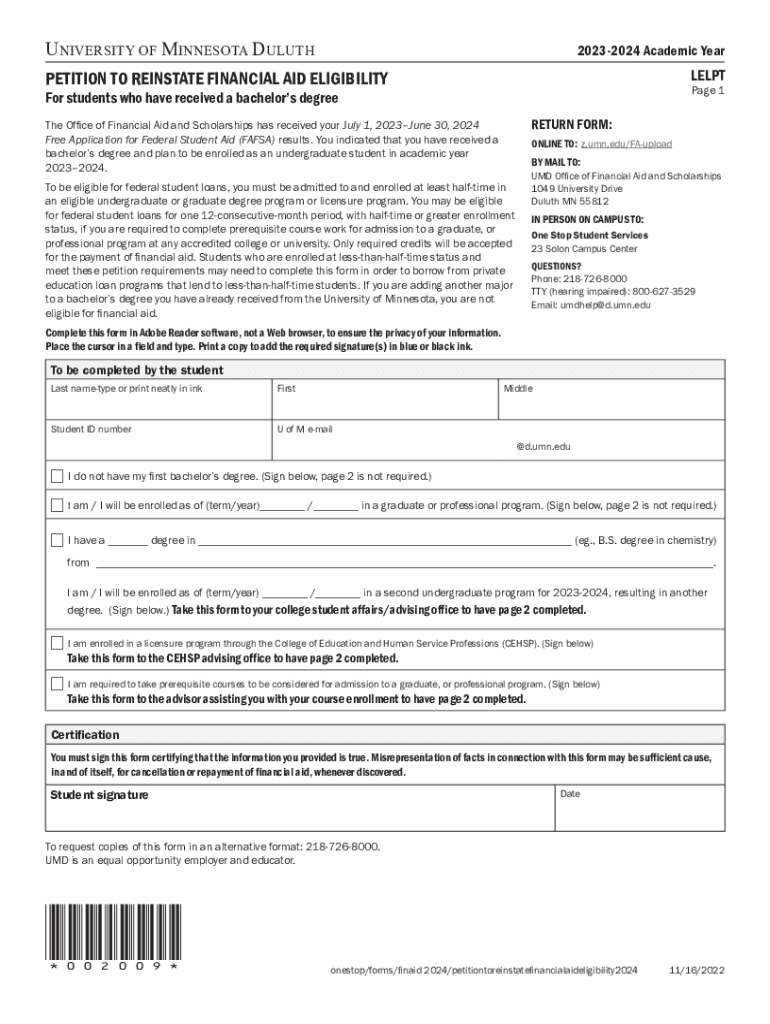 UNIVERSITY OF MINNESOTA DULUTHThis cover page includes instructions about where and how to turn in your form. If you are submitting a form that contains personally identifiable information (i.e. name,