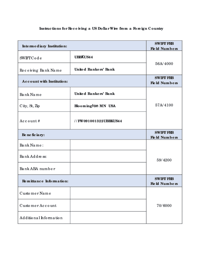 Get the free Receiving USD International wire via SWIFT. Instructions for Beneficiaries of Foreig...