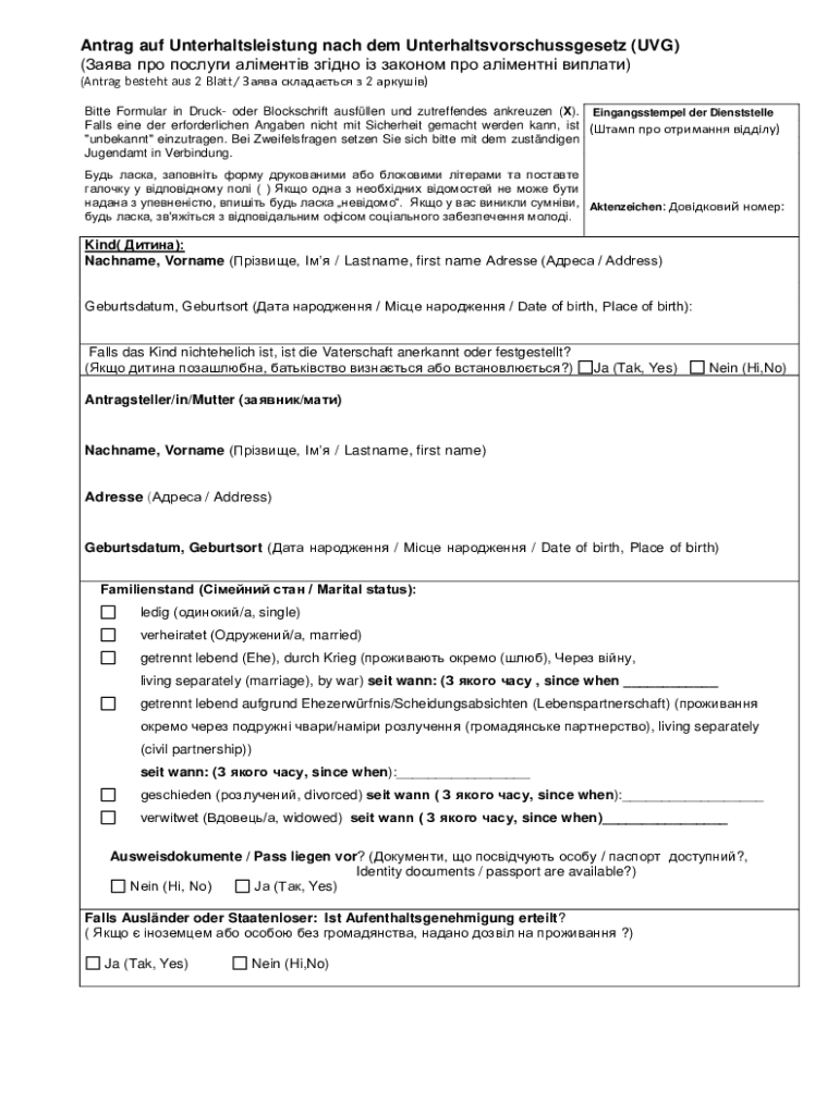 Ant rag AUF Unterhaltsleistung each them Unterhaltsvorschussgesetz (UV)