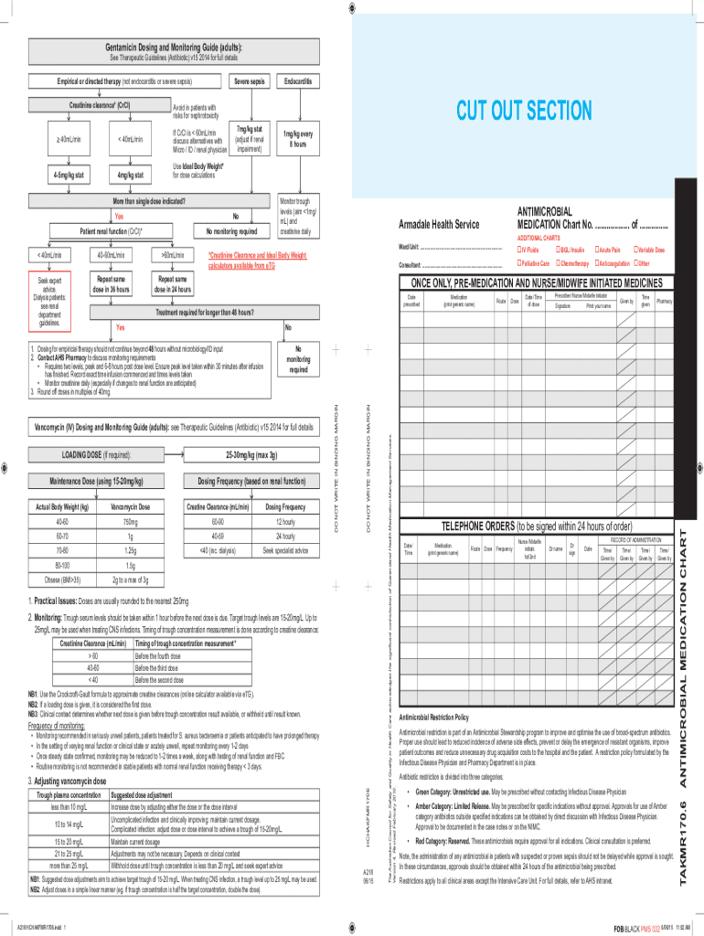Dosing and Monitoring Guide (adults): See Therapeutic Guidelines (Antibiotic) v15 2014 for full detailsEmpirical or directed therapy (not endocarditis or severe sepsis) Creatinine clearance* (CRC)Severe