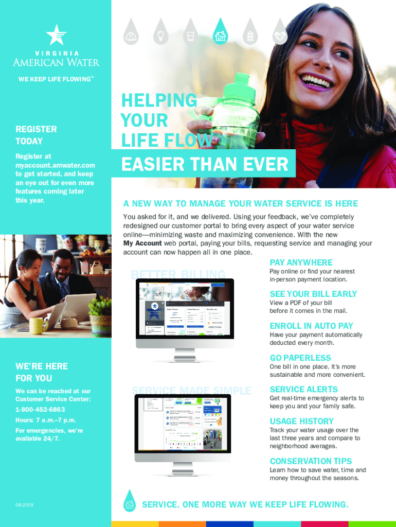 WE KEEP LIFE FLOWINGREGISTER TODAY Register at my account.amwater.com to get started, and keep an eye out for even more features coming later this year. HELPING YOUR LIFE FLOW EASIER THAN EVER A NEW