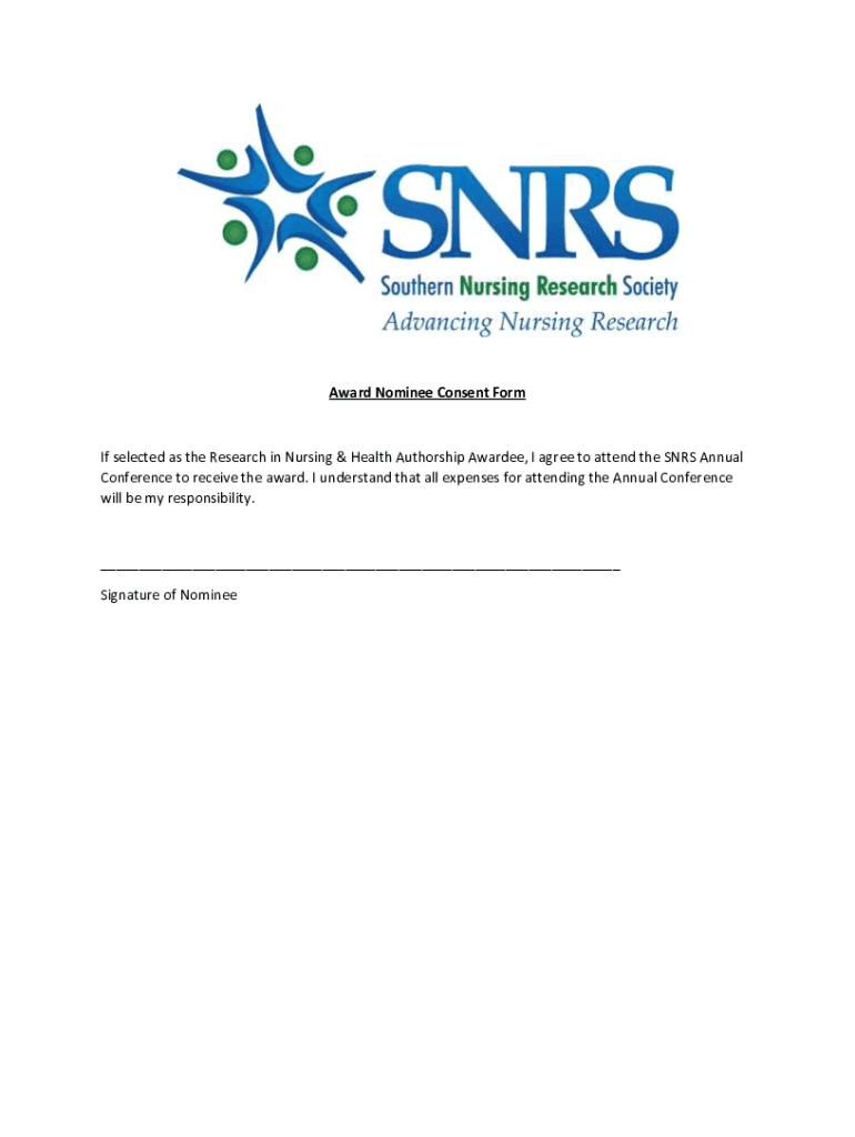 Award Nominee Consent Formic selected as the Research in Nursing & Health Authorship Awardee, I agree to attend the SARS Annual Conference to receive the award. I understand that all expenses for