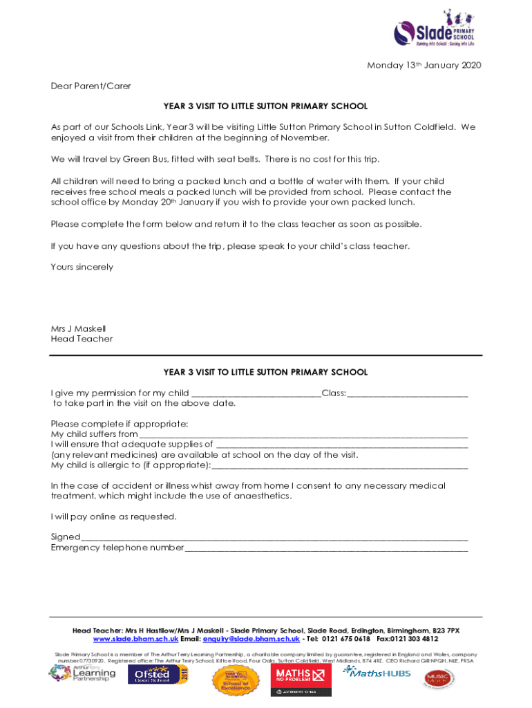 Monday 13th January 2020 Dear Parent/Carer YEAR 3 VISIT TO LITTLE SUTTON PRIMARY SCHOOL As part of our Schools Link, Year 3 will be visiting Little Sutton Primary School in Sutton Oldfield. We enjoyed