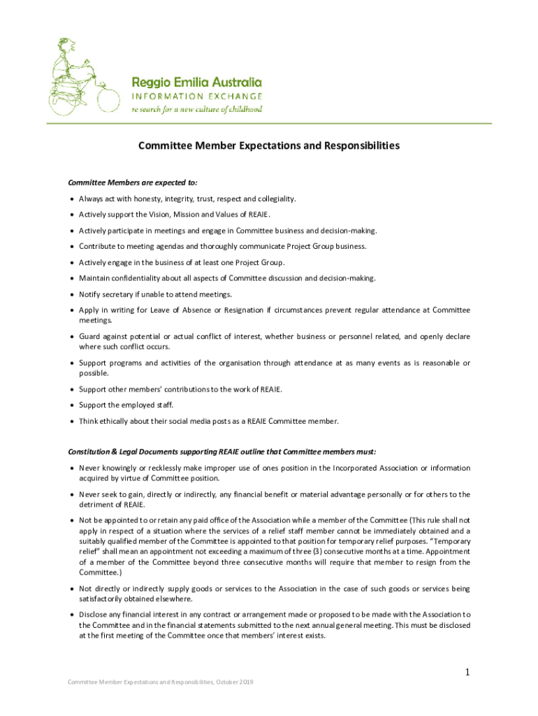 Get the free 8b Committee Member Expectations & Responsibilities - reggioaustralia org