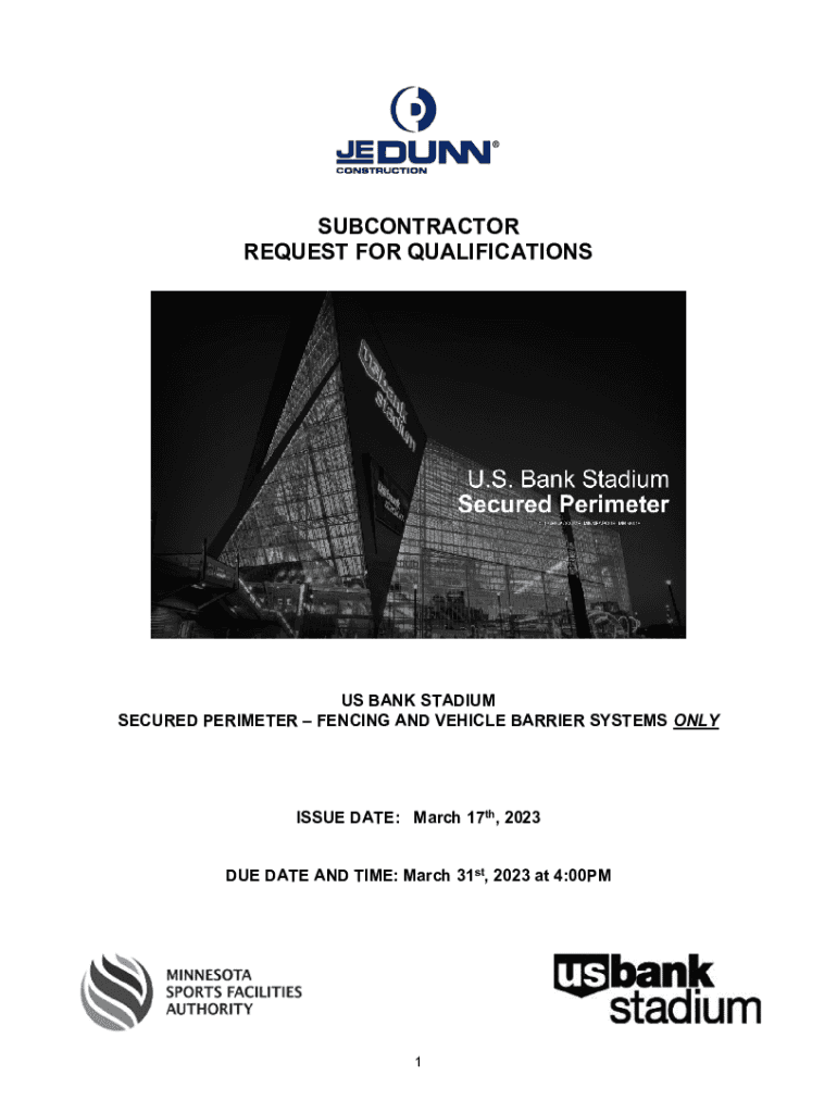 SUBCONTRACTOR REQUEST FOR QUALIFICATION SUS BANK STADIUM SECURED PERIMETER FENCING AND VEHICLE BARRIER SYSTEMS NONISSUE DATE: March 17th, 2023 DUE DATE AND TIME: March 31st, 2023 at 4:00PM1REQUEST