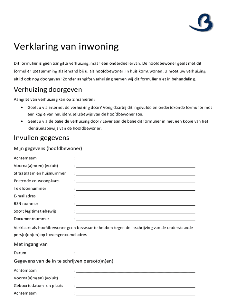 Ophalen, creëren, maken en ondertekenen verklaring van inwoning online invullen form